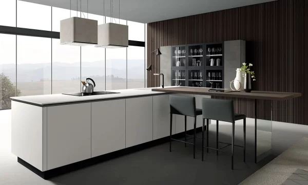 L’anta Stratos è caratterizzata da materiali di design, resistenti, idrorepellenti, ecocompatibili, antibatterici, facili da pulire.