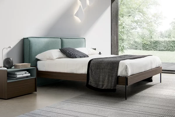 Cloud è il letto matrimoniale che si accompagna benissimo al comodino STREAM nella versione con vano a giorno è possibile riprendere il colore del letto su parte dell’arredo, per creare un elemento di continuità fra i diversi complementi della camera da letto.
